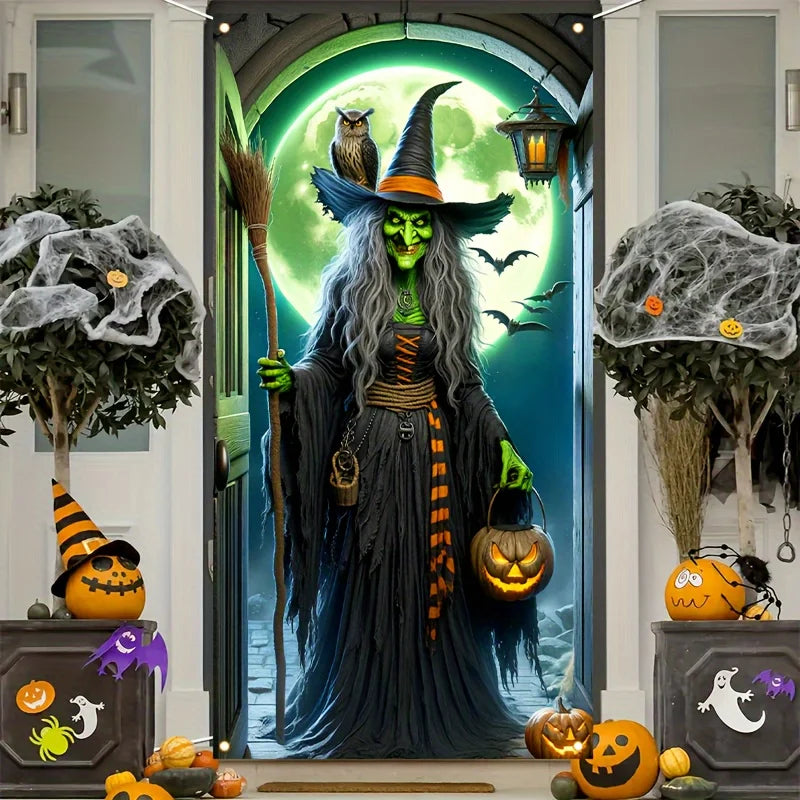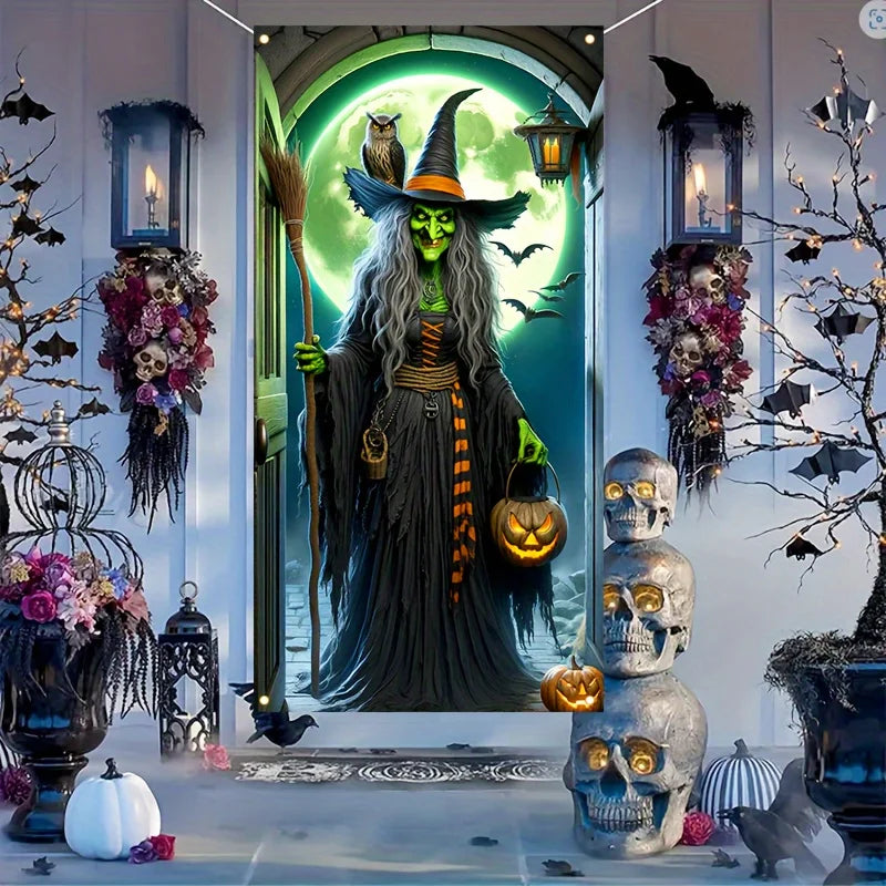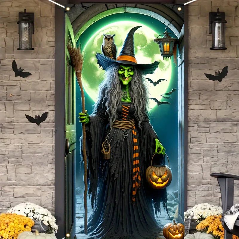 🎃 Helovino Sodo Vėliava su Ragana ir Pelėda + 2D Namo Numeris