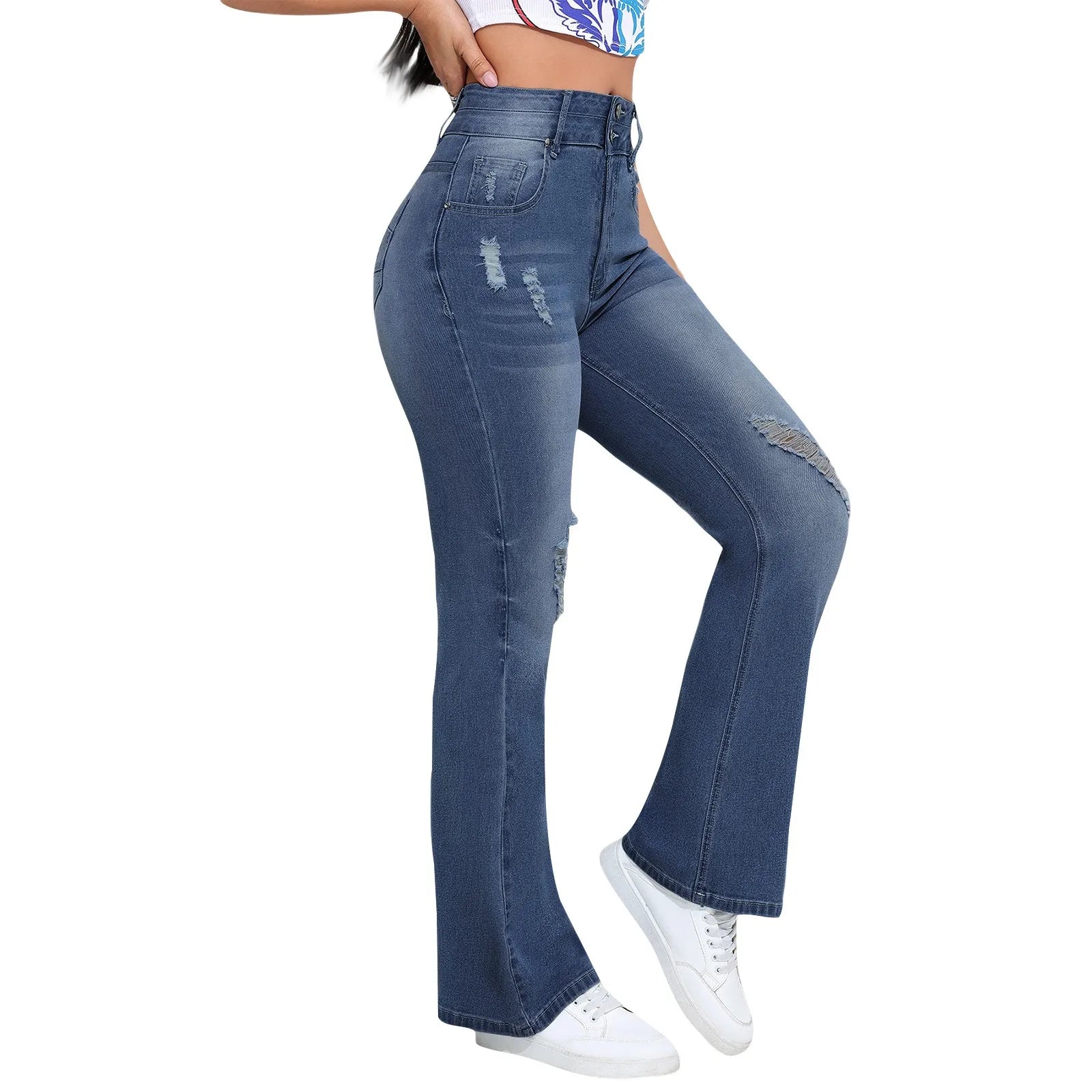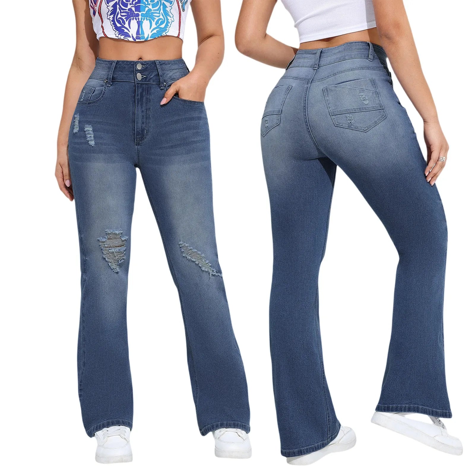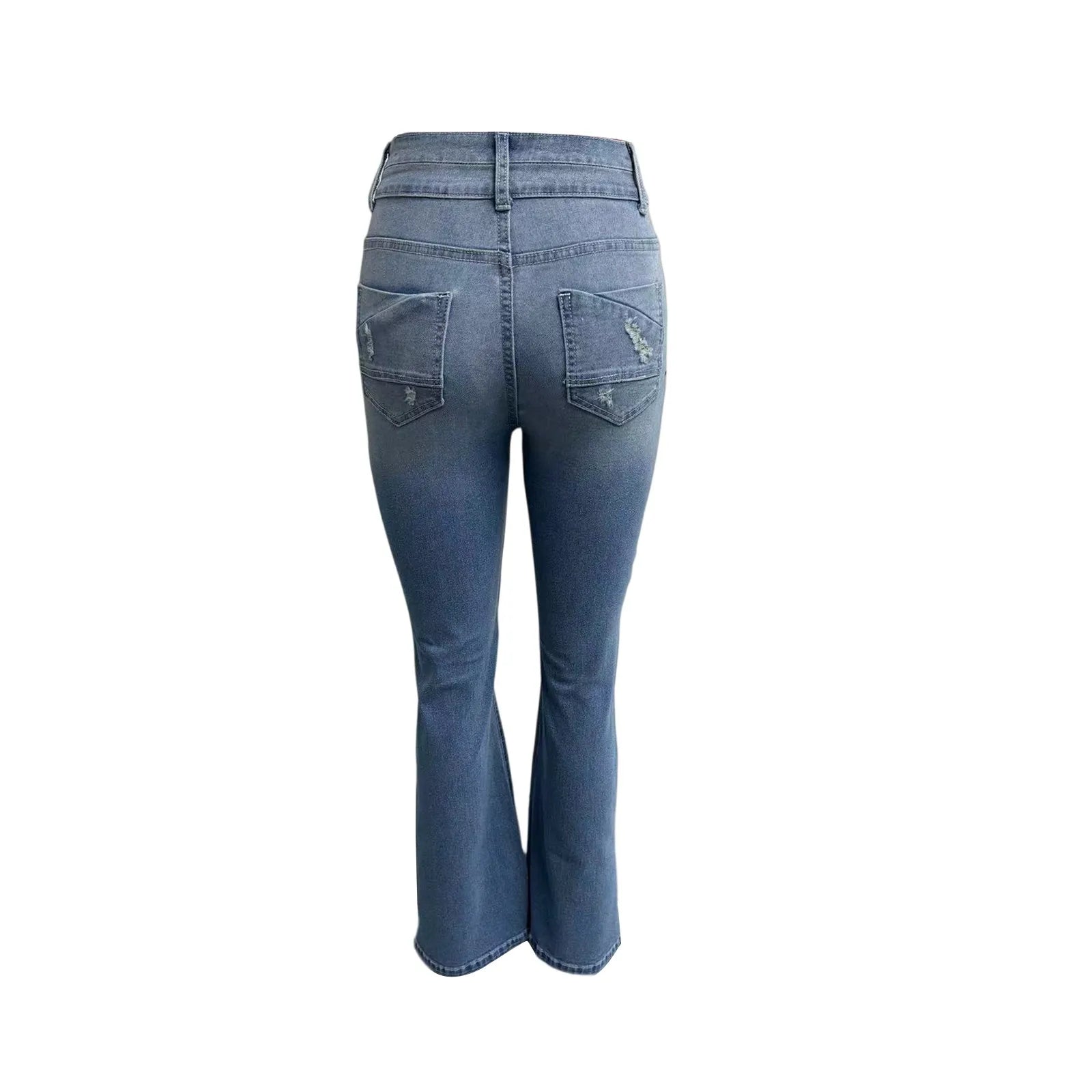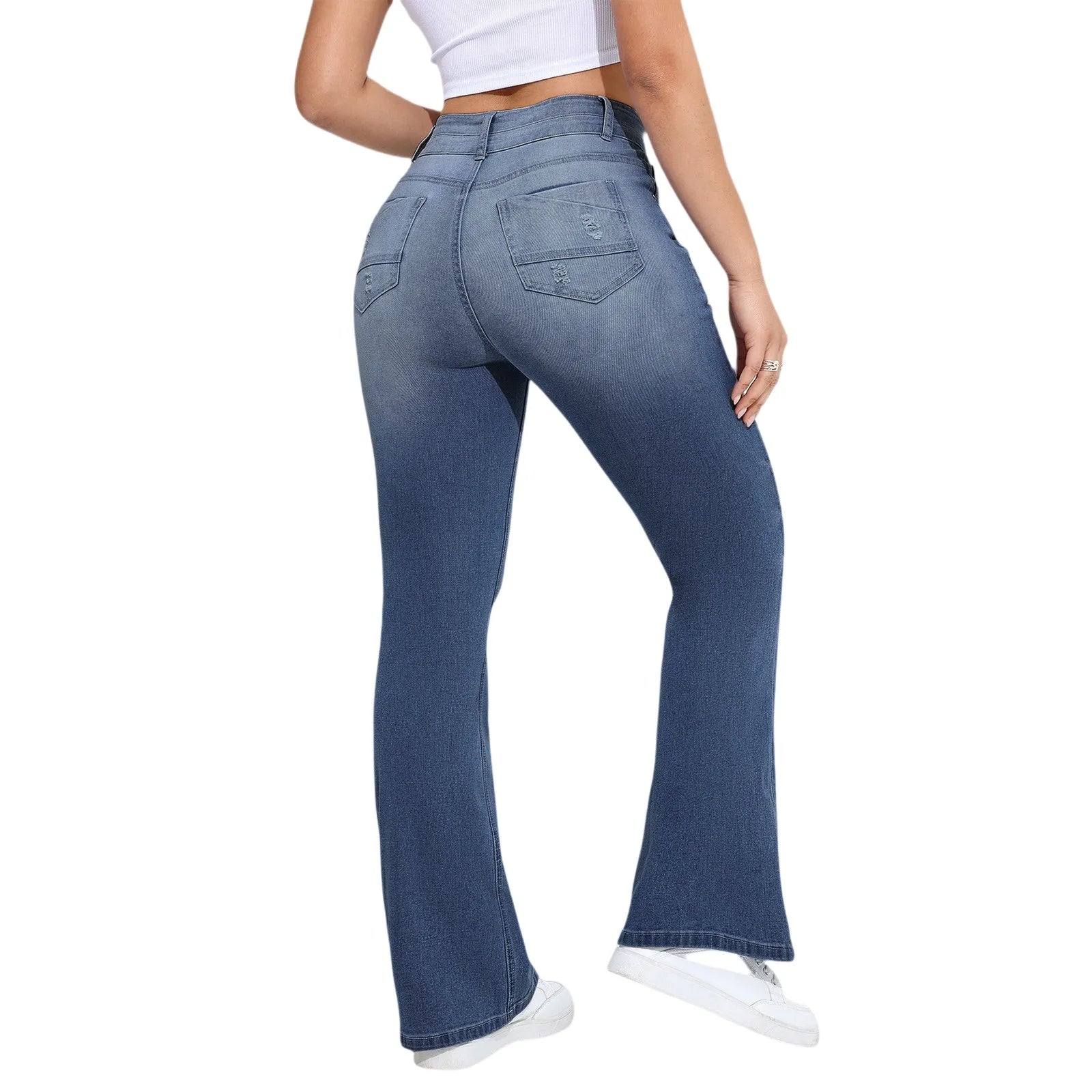 Stilingi moterų džinsai su išplėstomis klešomis (bell bottom), kurie sugrąžina 70-ųjų mados šarmą su šiuolaikišku komfortu! Šios tiesios kojos kelnės puikiai tinka įvairaus dydžio moterims ir yra universalus pasirinkimas tiek kasdieniam, tiek darbo stiliui.