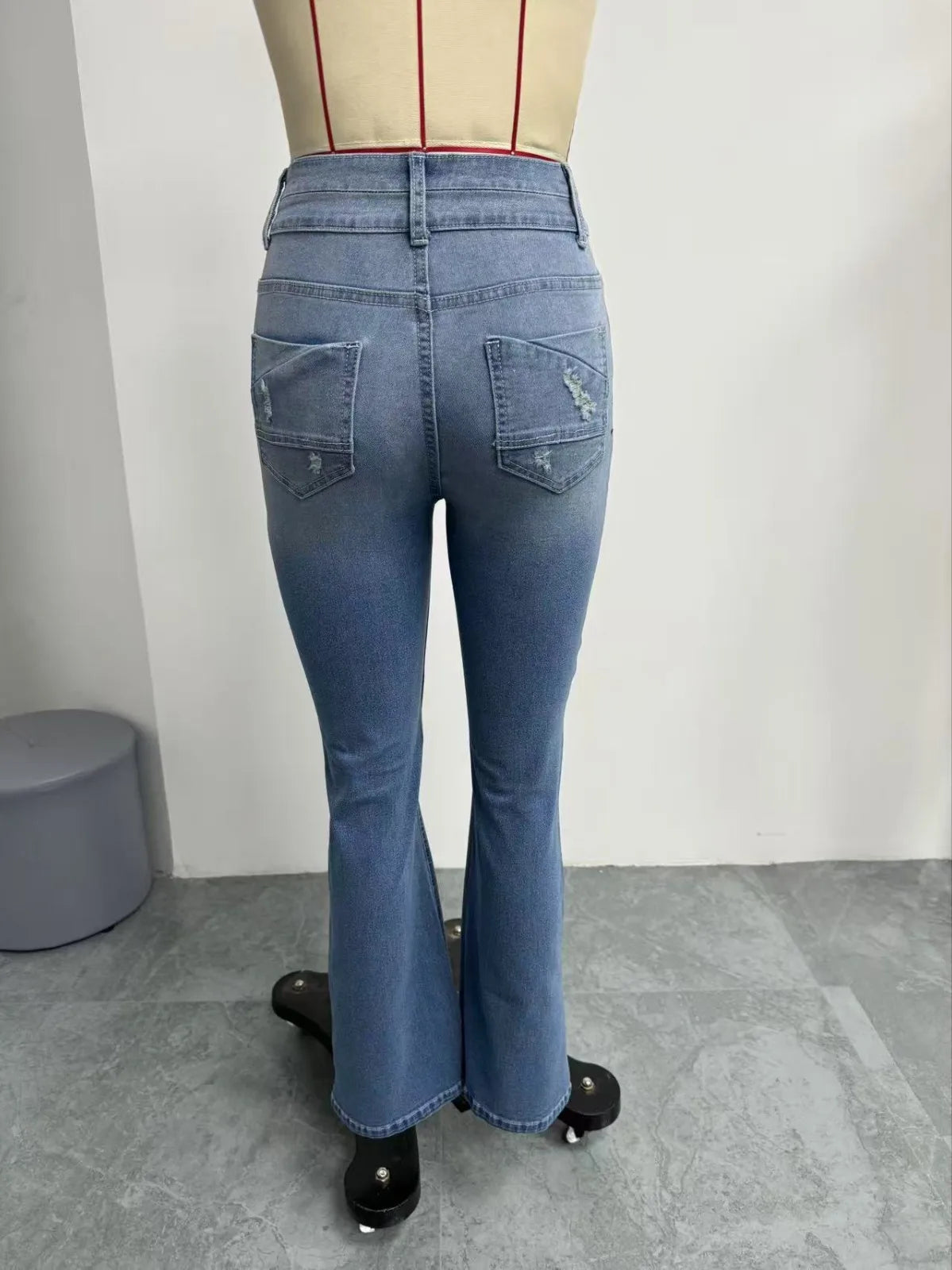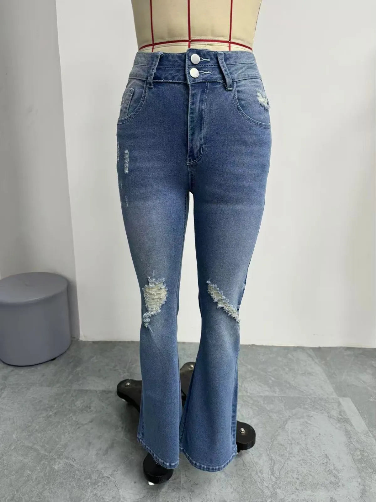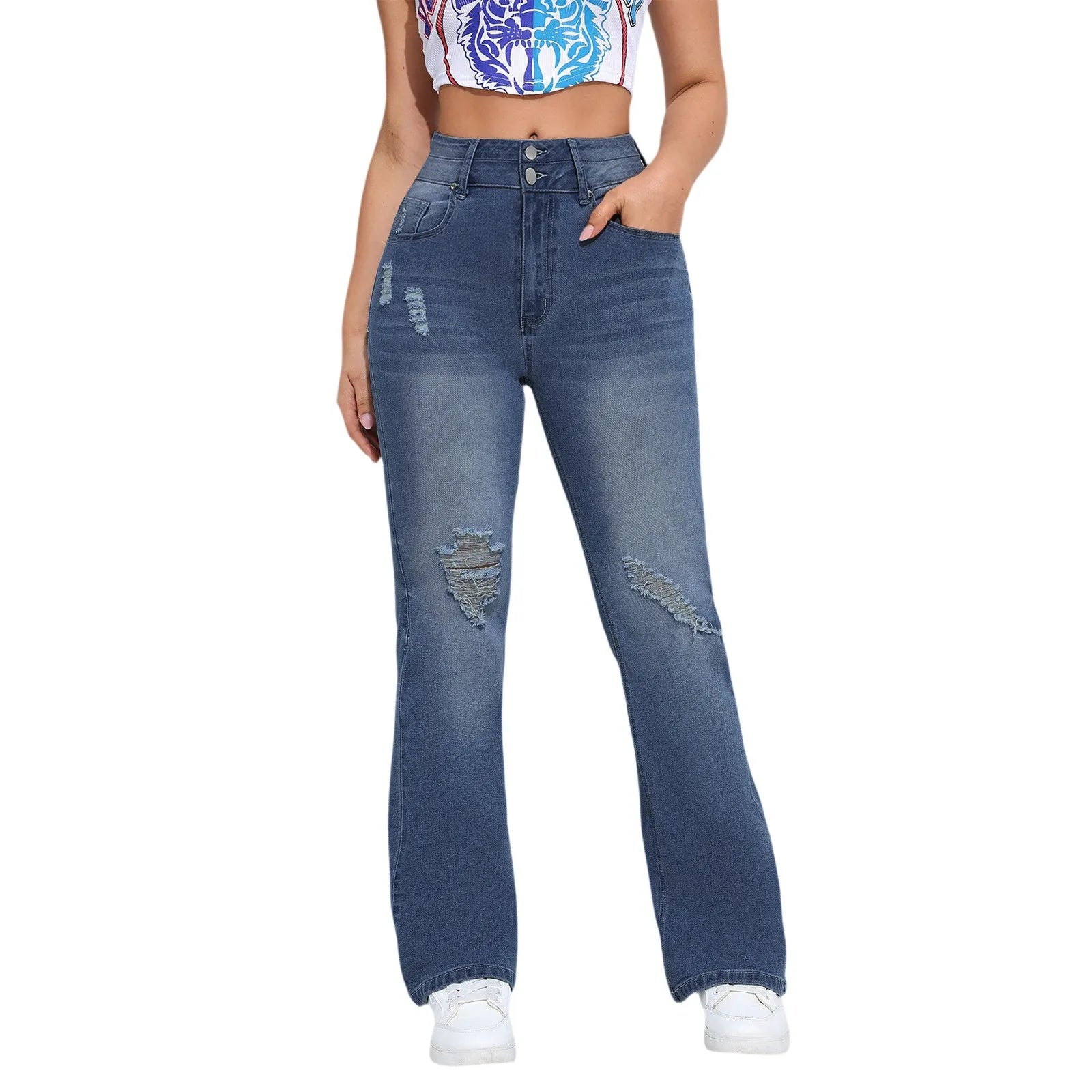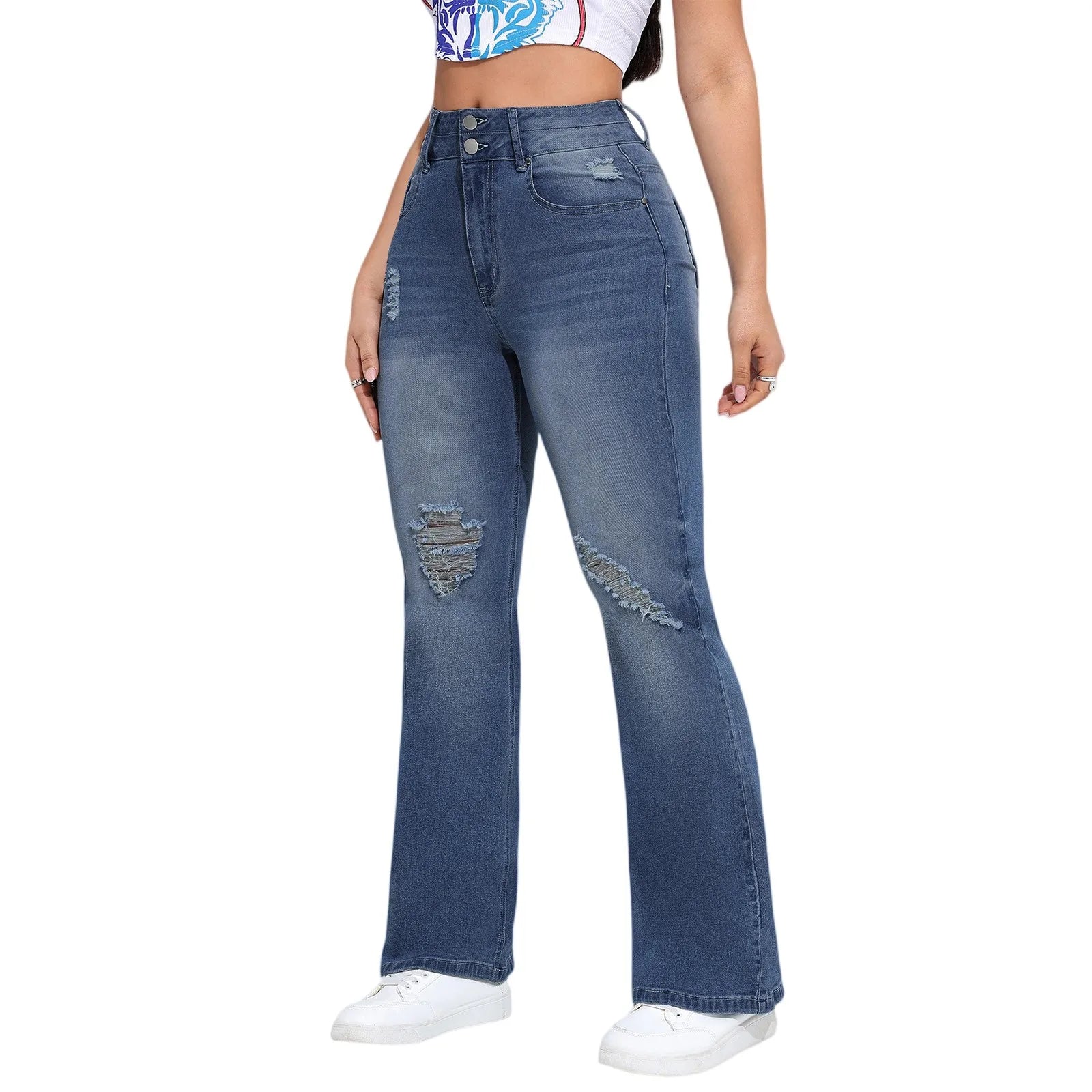 Stilingi moterų džinsai su išplėstomis klešomis (bell bottom), kurie sugrąžina 70-ųjų mados šarmą su šiuolaikišku komfortu! Šios tiesios kojos kelnės puikiai tinka įvairaus dydžio moterims ir yra universalus pasirinkimas tiek kasdieniam, tiek darbo stiliui.