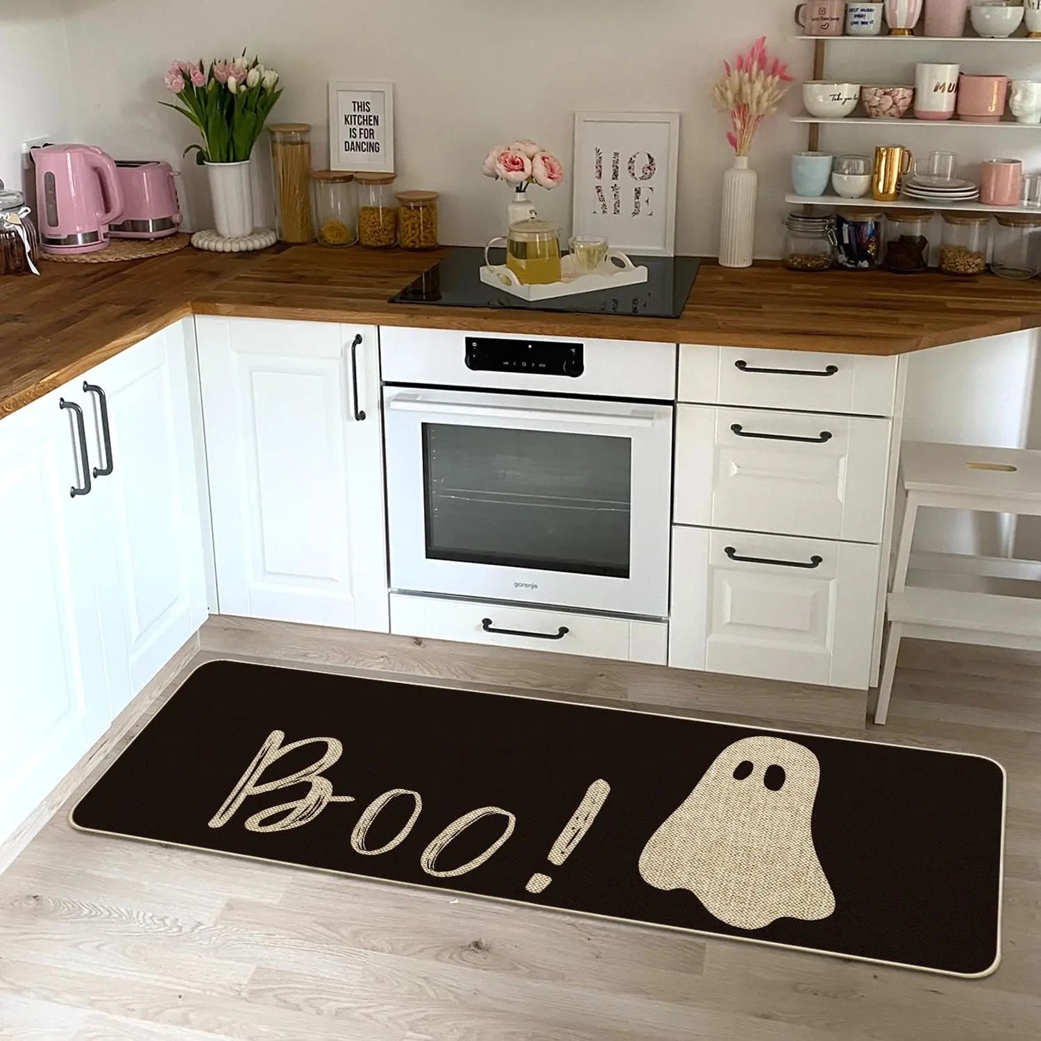 Helovino Vaiduoklio 'Boo' Durų Kilimėlis - Sezono Rudens Šventės Dekoras Balkono Koridoriaus Įėjimo Neslidus Vonios Kilimas