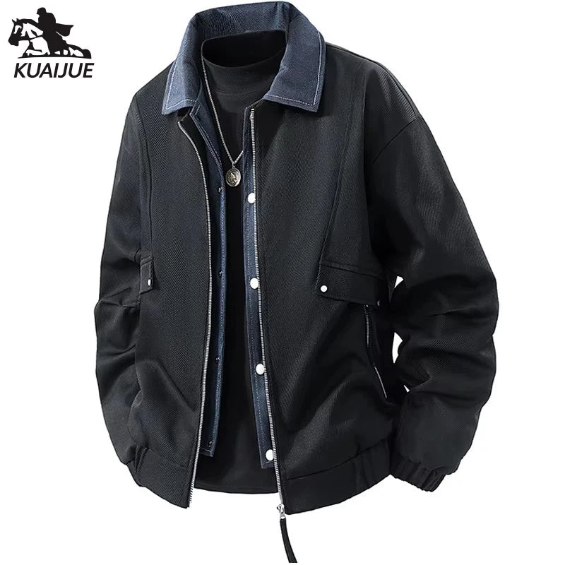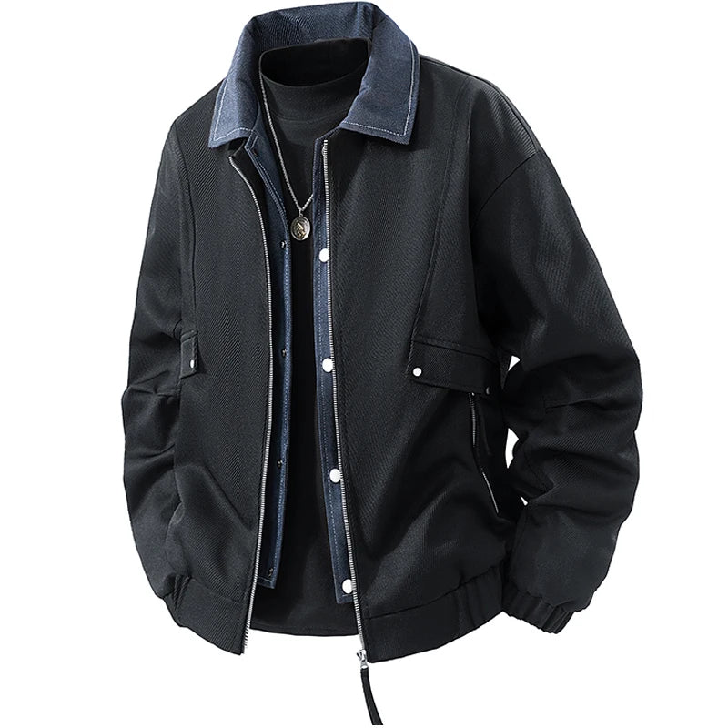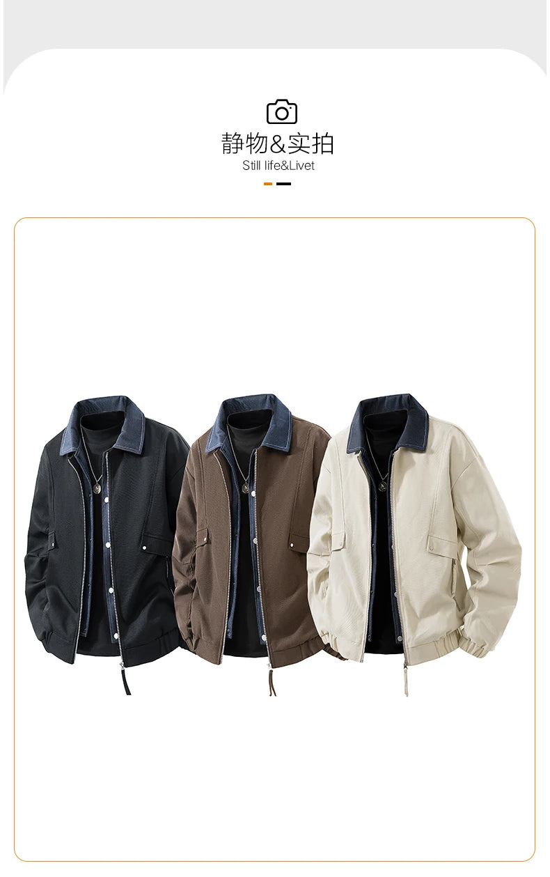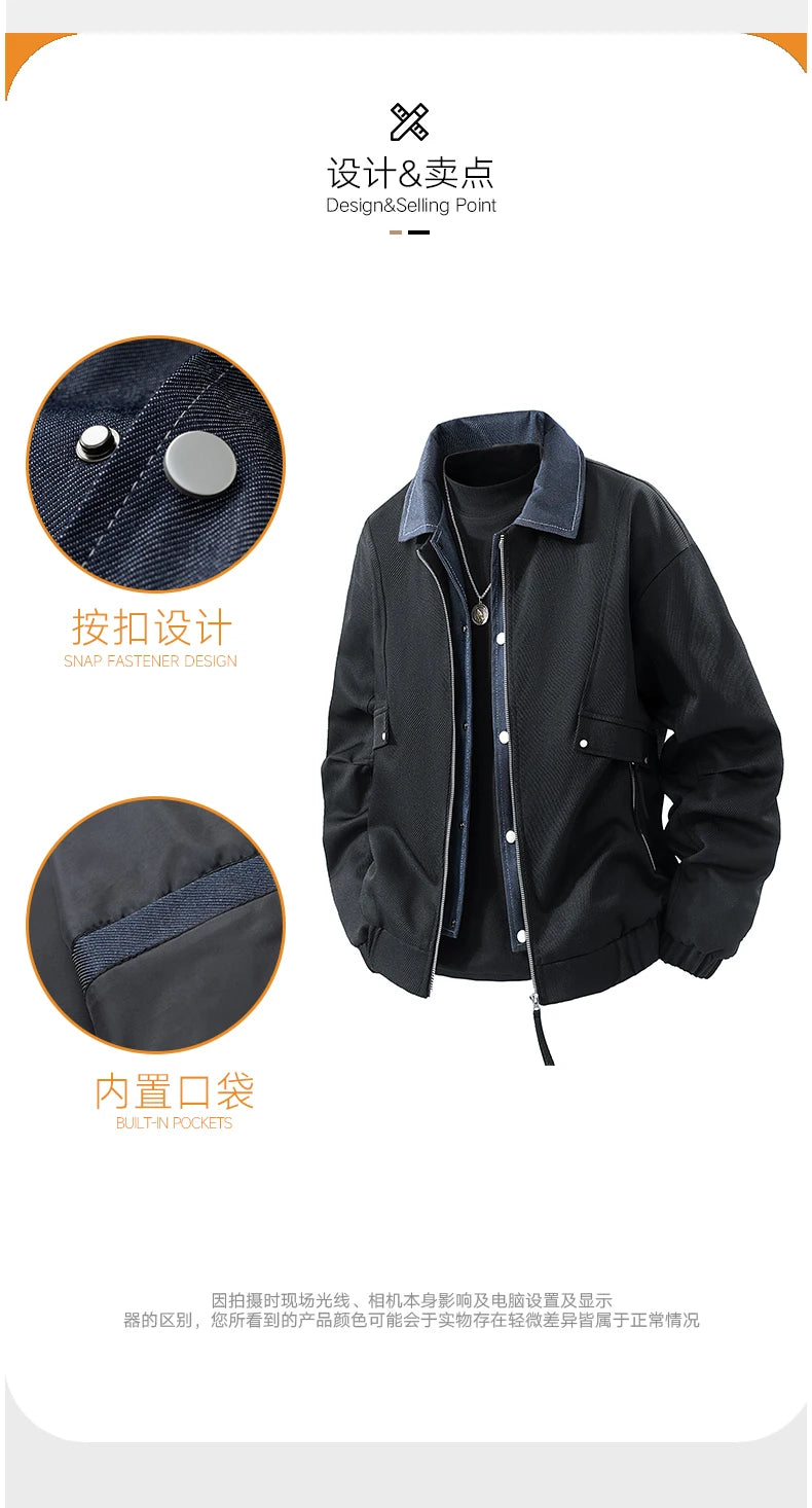 Vyriška Džinsinė Striukė su Spaudiniais - Pavasario Rudens Verslo Casual