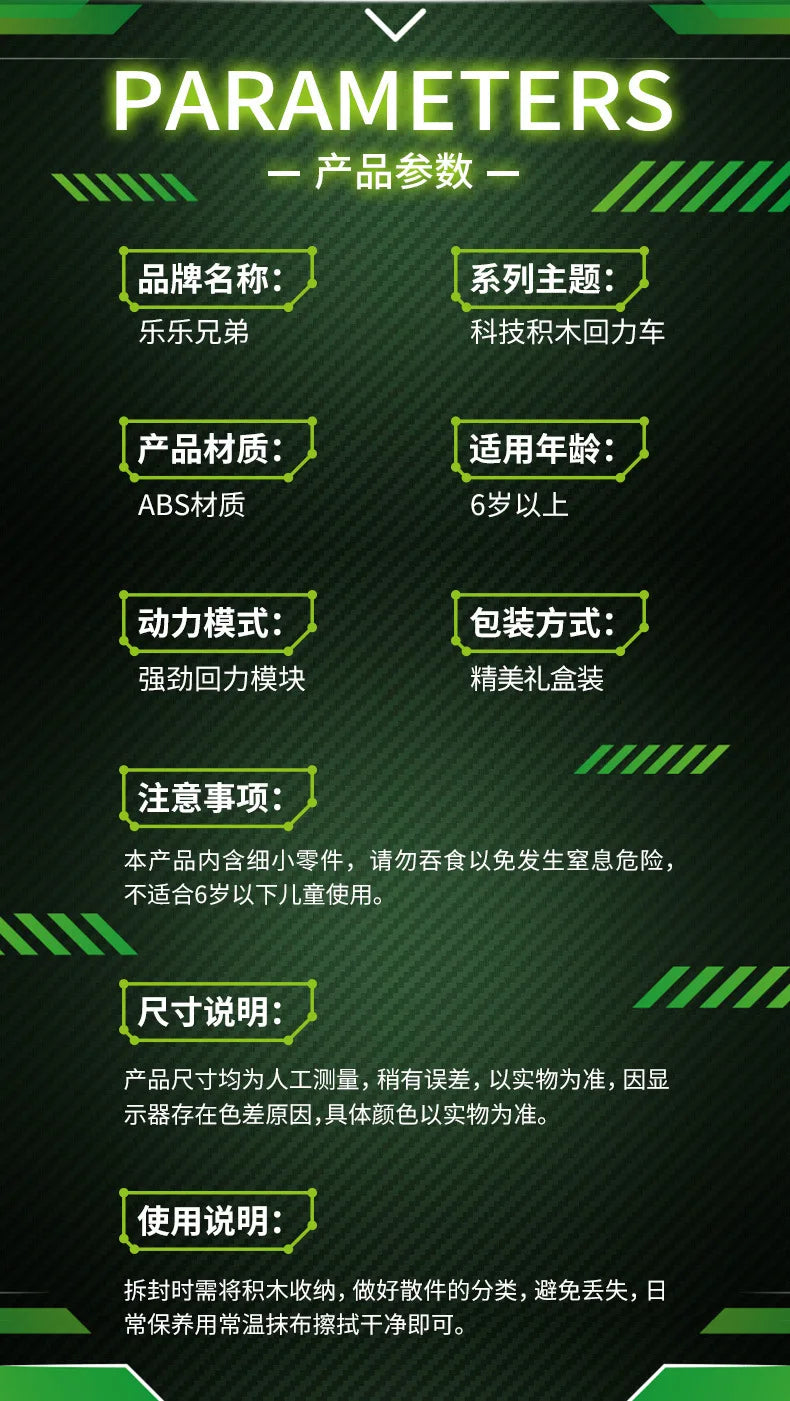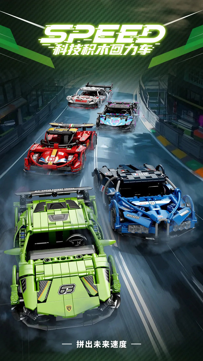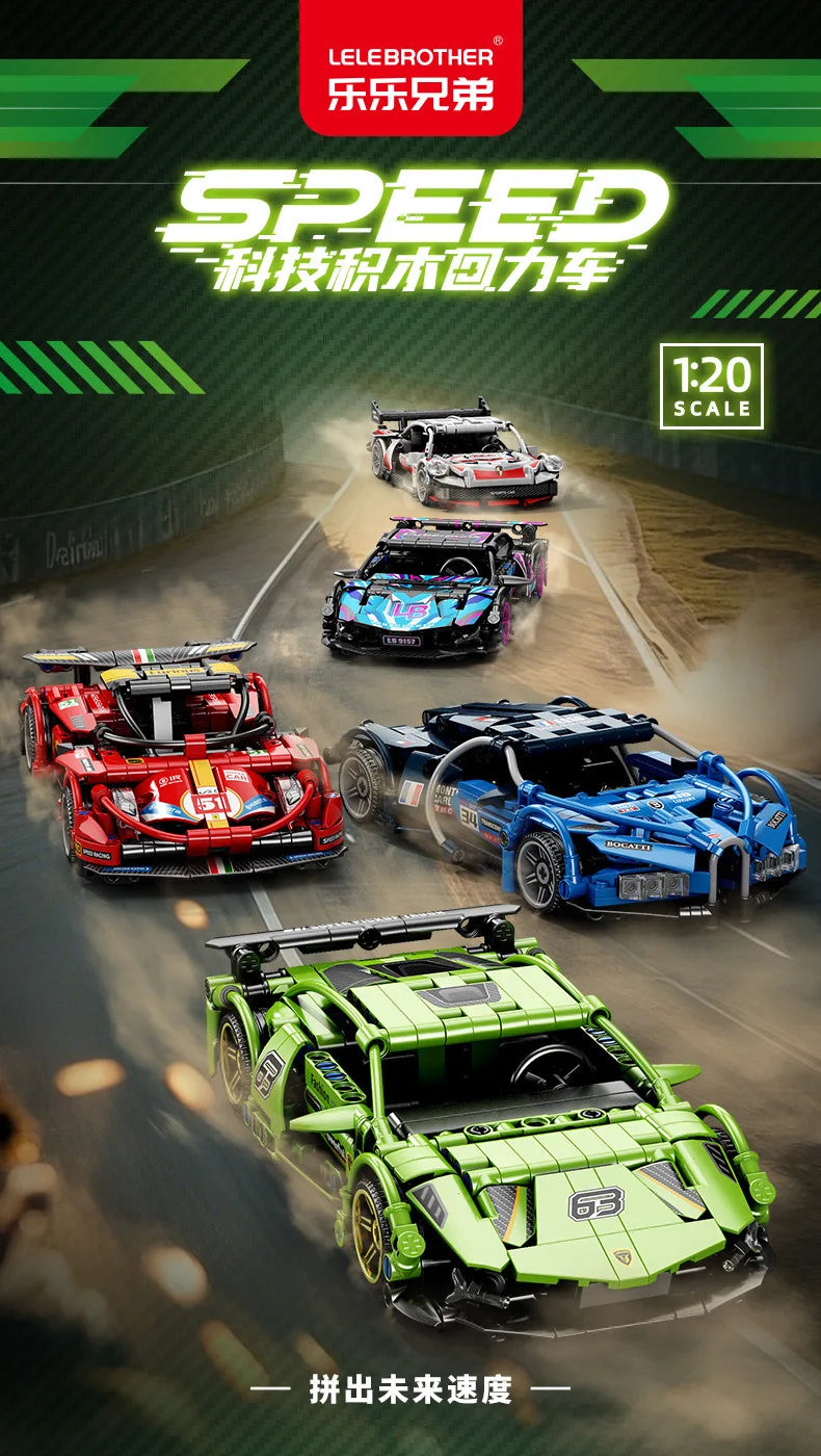 Lele Brothers Technology Power Racing Car Assembly Model Boy Assembly Building Blocks Toy Gift