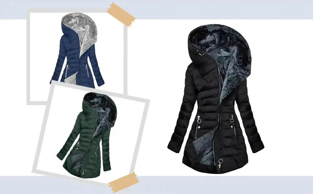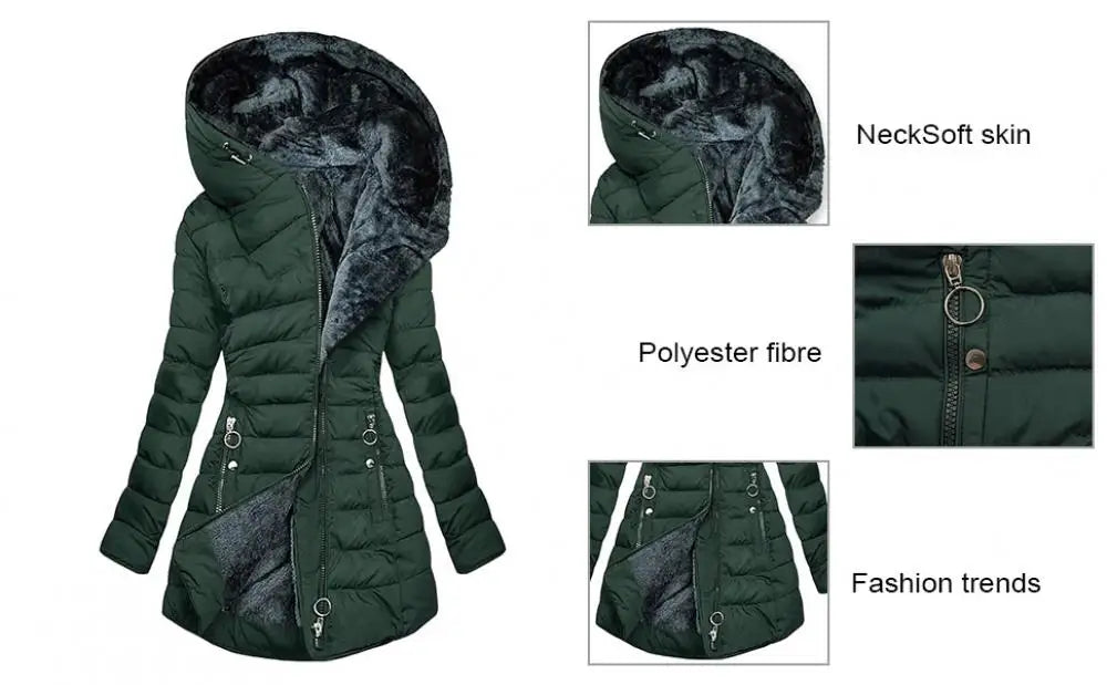 Pliušinis Žieminis Paltas Moterims su Gobtuvu - Šiltas Vėjui Atsparus Striukė Didelių Dydžių