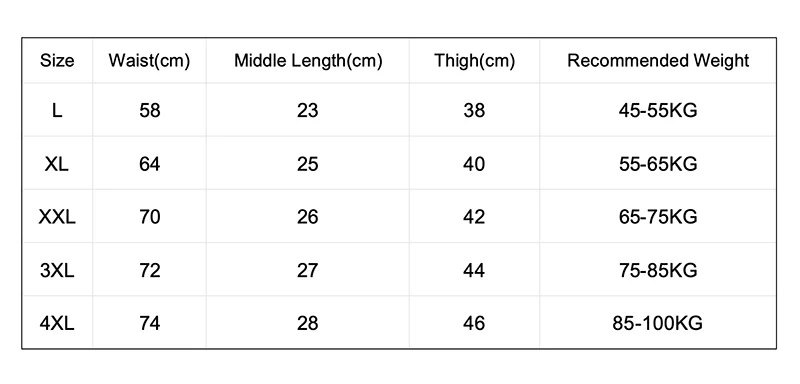 | Dydis | Juosmens apimtis (cm) | Klubų apimtis (cm) | Rekomenduojamas svoris (kg) |