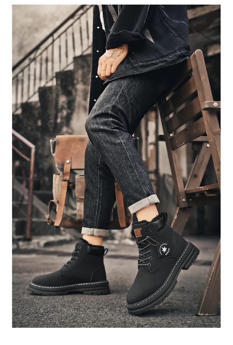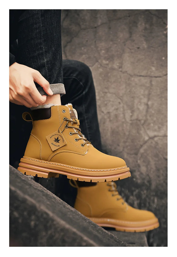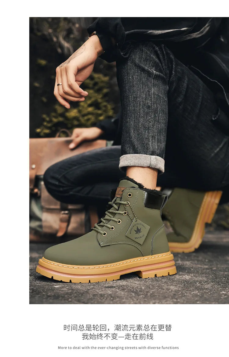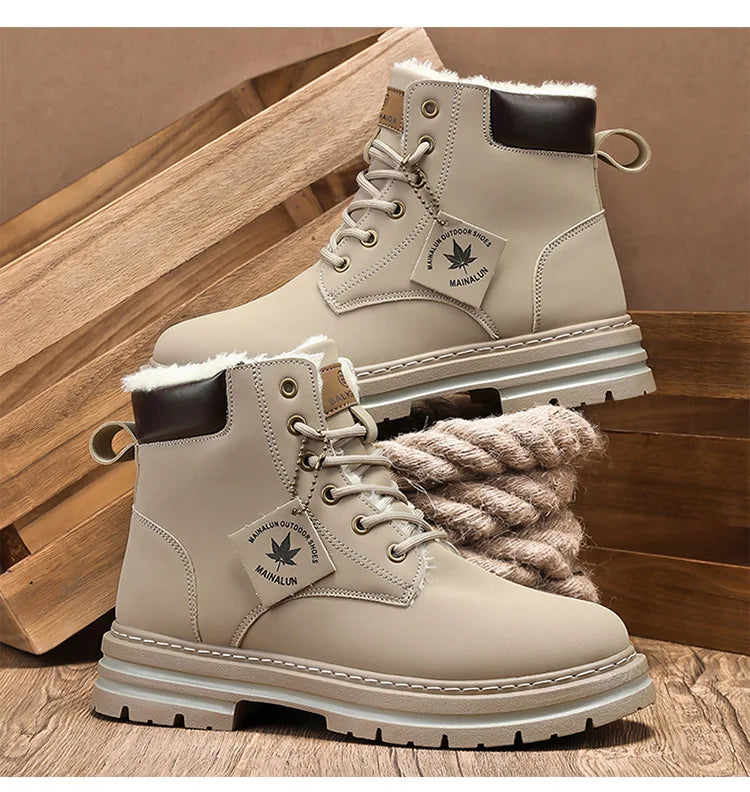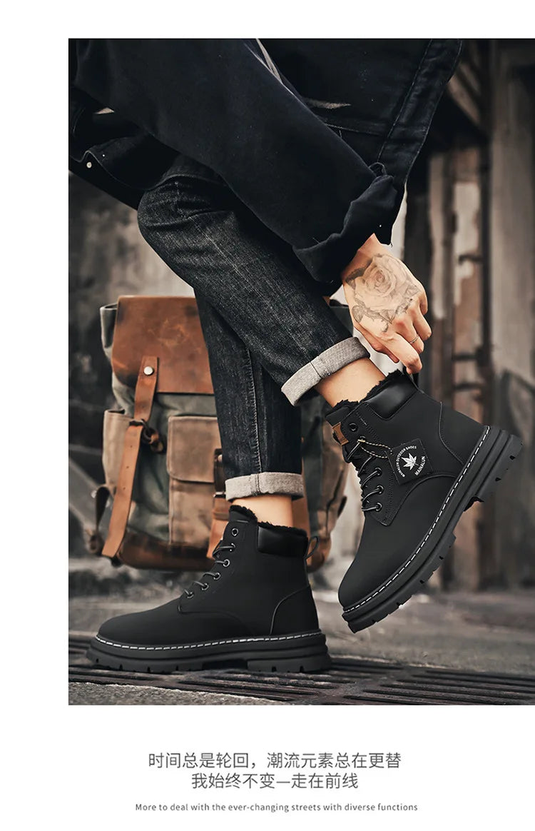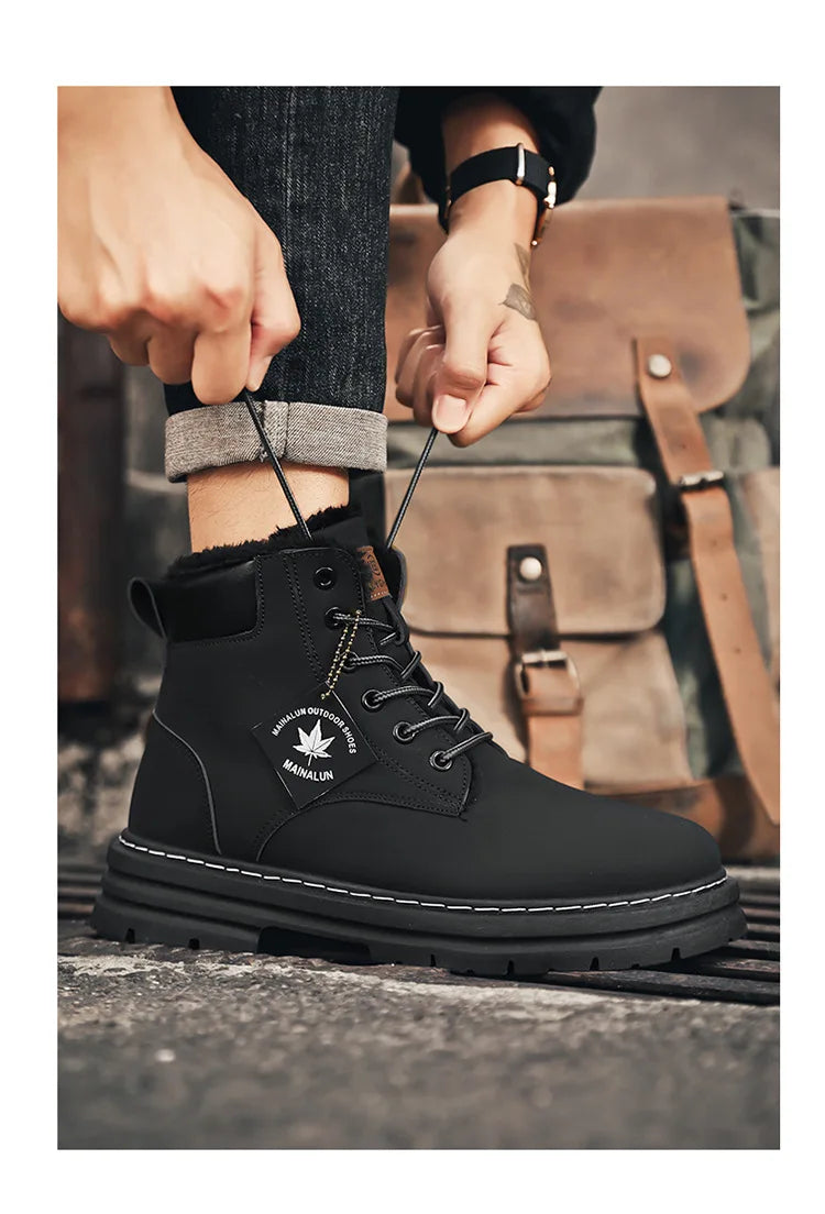 Vyriški Žieminiai Batai su Kailiuku - Šilti Aukšti Batai Storais Padais