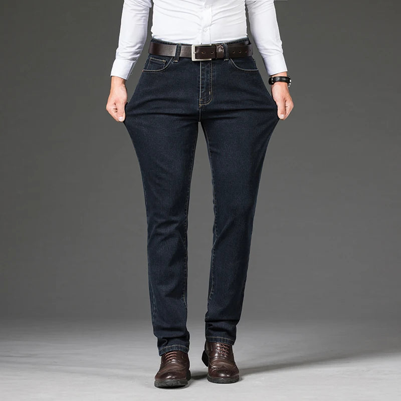 Vyriški Klasikiniai Džinsai - Elastingi Tiesūs Verslo Stiliaus Kelnės