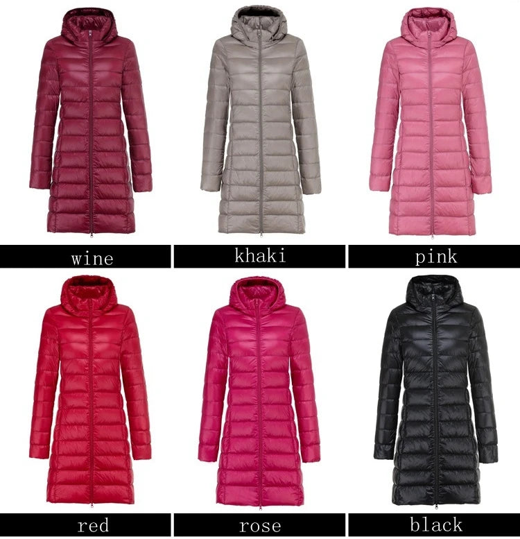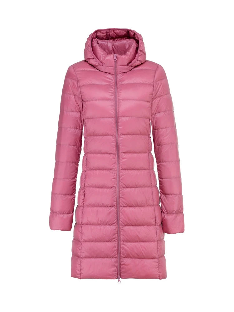 Moteriška Ilga Žieminė Striukė su Gobtuku - Ultra Lengva Pūkinė Striukė