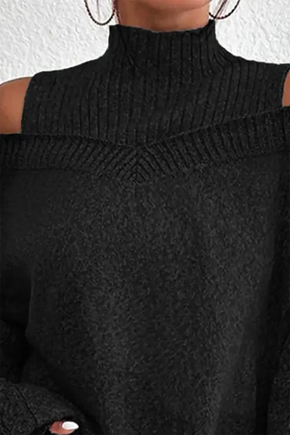 Šis stilingas juodas megztinis su pynimo raštais yra tikras akių dėmesio objektas! Unikalus cold shoulder dizainas su atidarytais pečiais ir elegantiškos lantern rankovės suteiks jums išskirtinį ir madingas vaizdą.