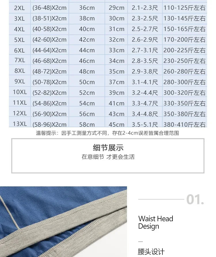 Mes suprantame, kaip sunku rasti kokybiškus apatinius drabužius labai didelių dydžių. Šios boxer kelnaitės specialiai sukurtos vyrams su 11XL-13XL dydžiais, užtikrinant maksimalų komfortą, kokybę ir patogumą.