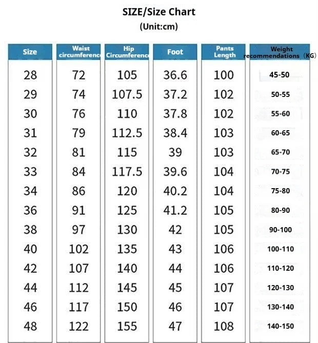 XXL (44-46) | 110-115 | 130-135 | 110 | 36 | 33 |
