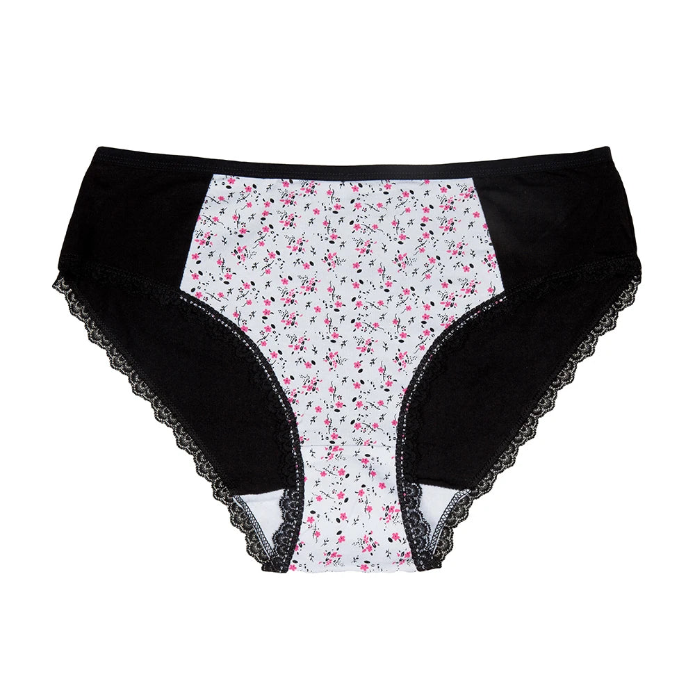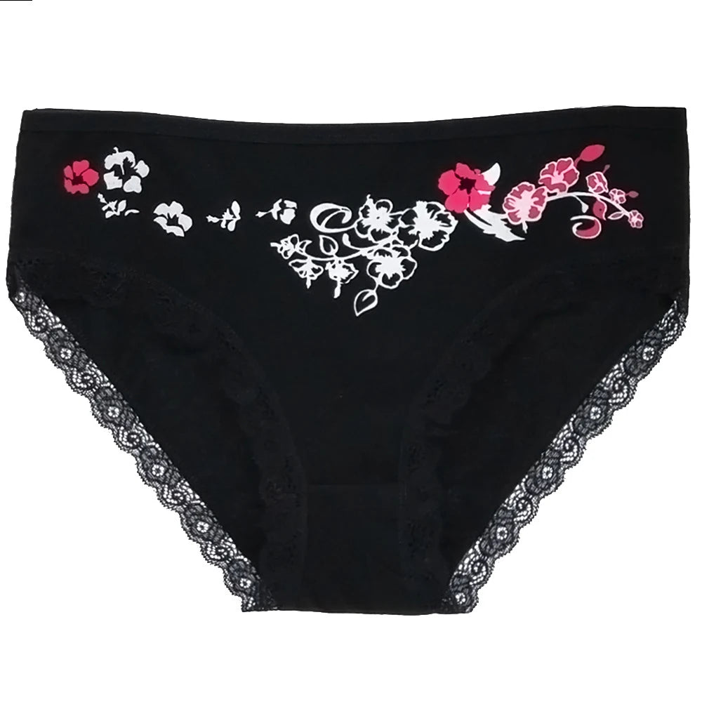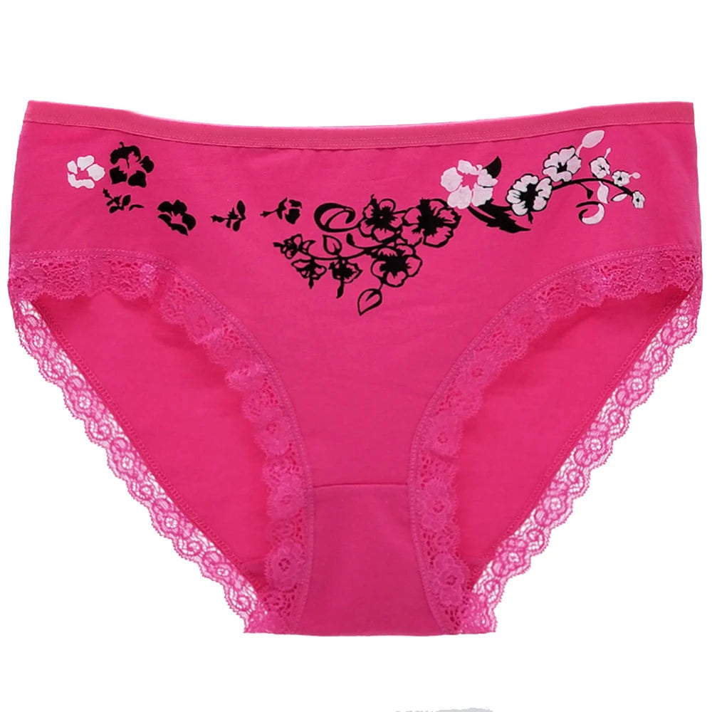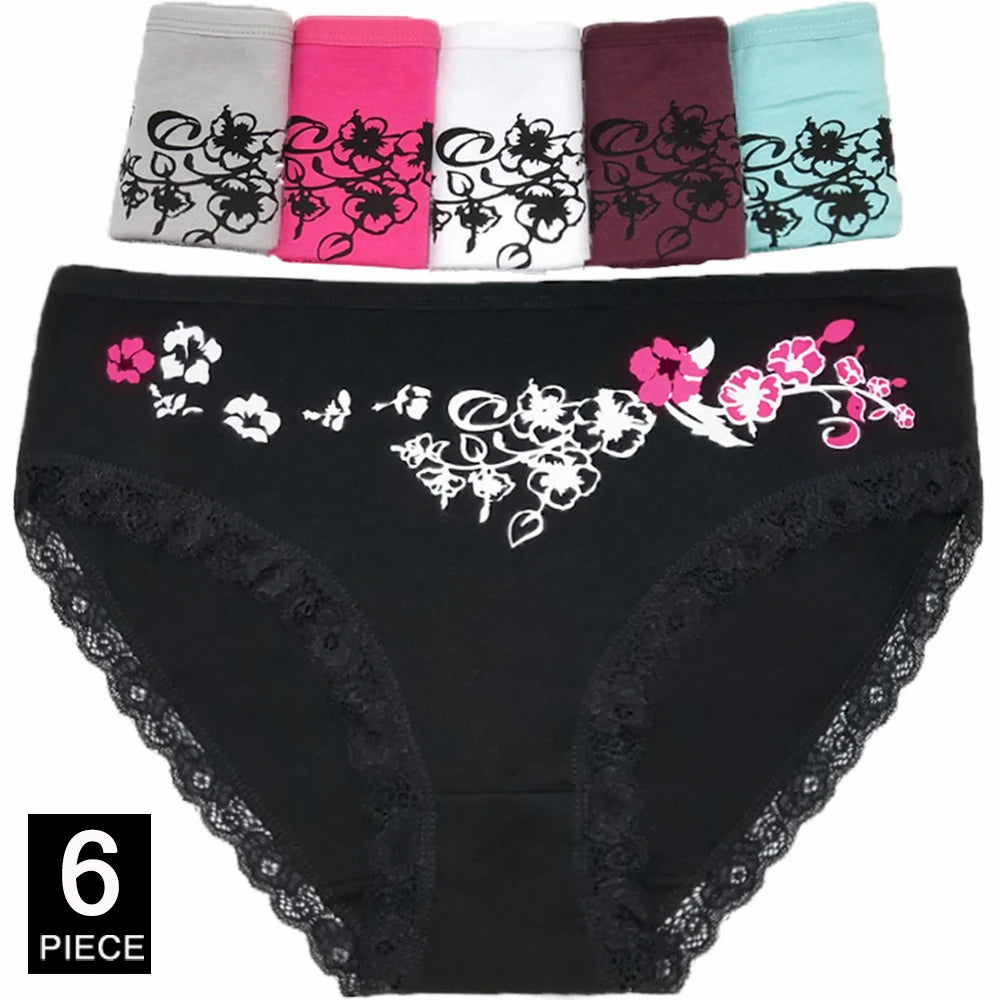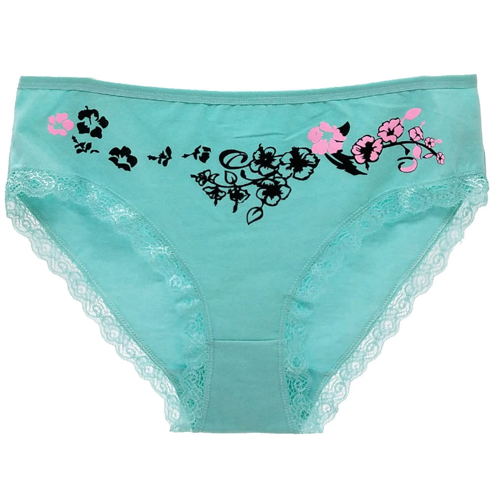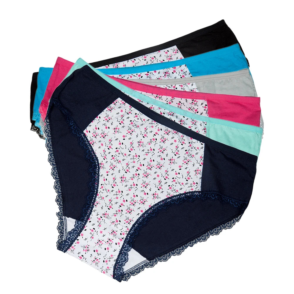Moteriškos Medvilninės Kelnaitės - 6 Dalių Komplektas su Nėriniais ir Spaudiniais