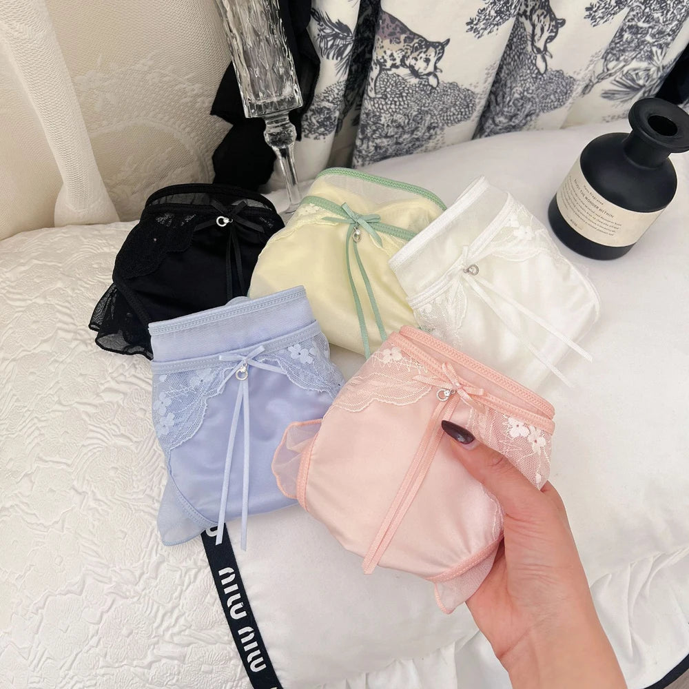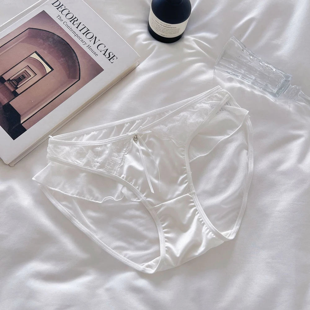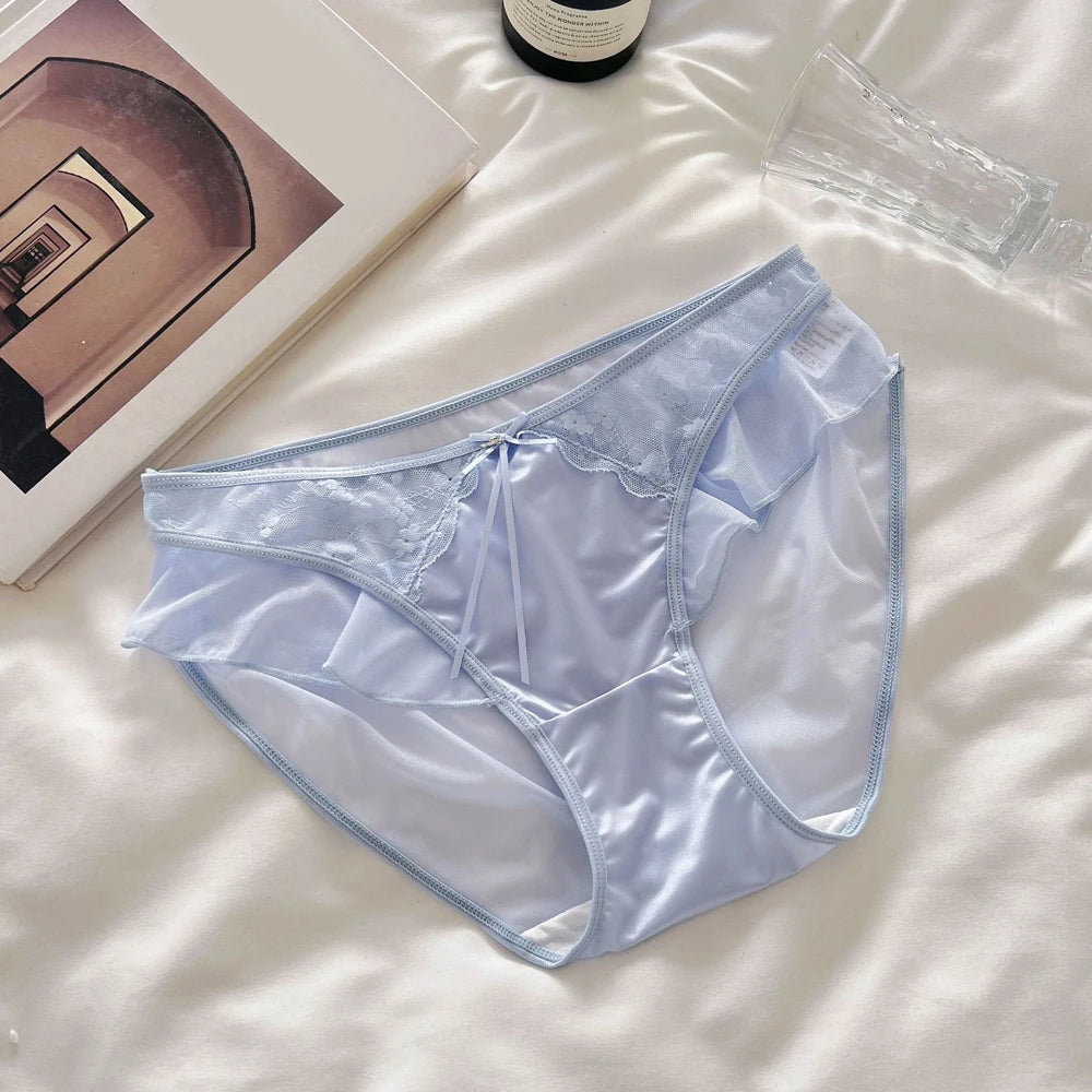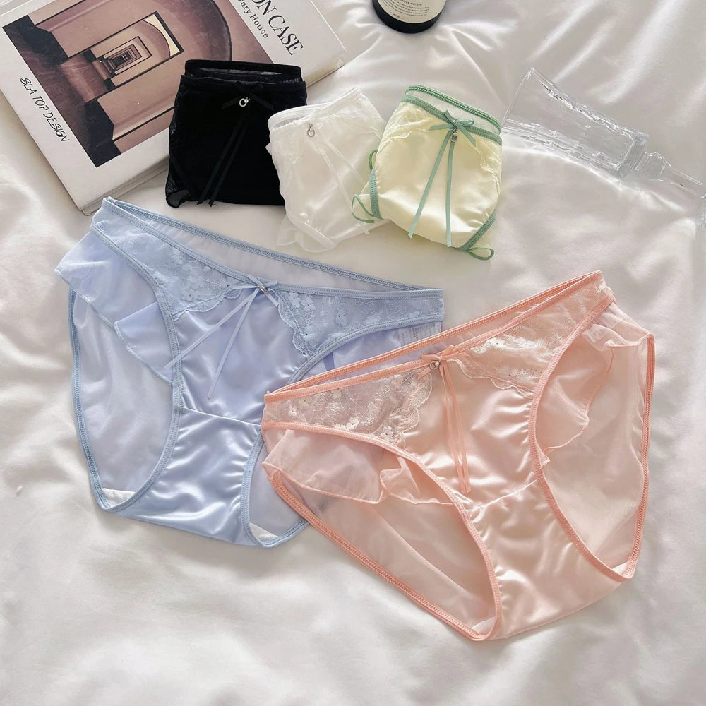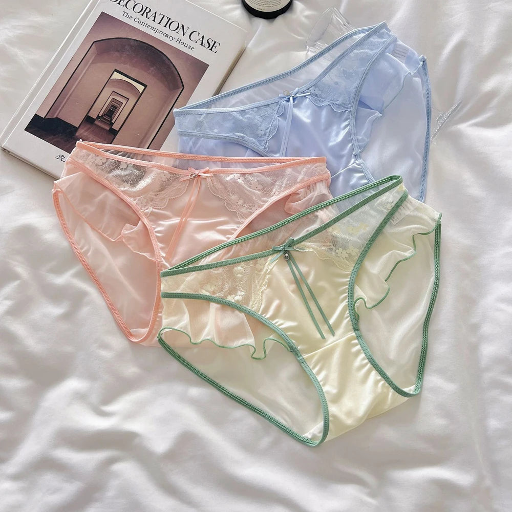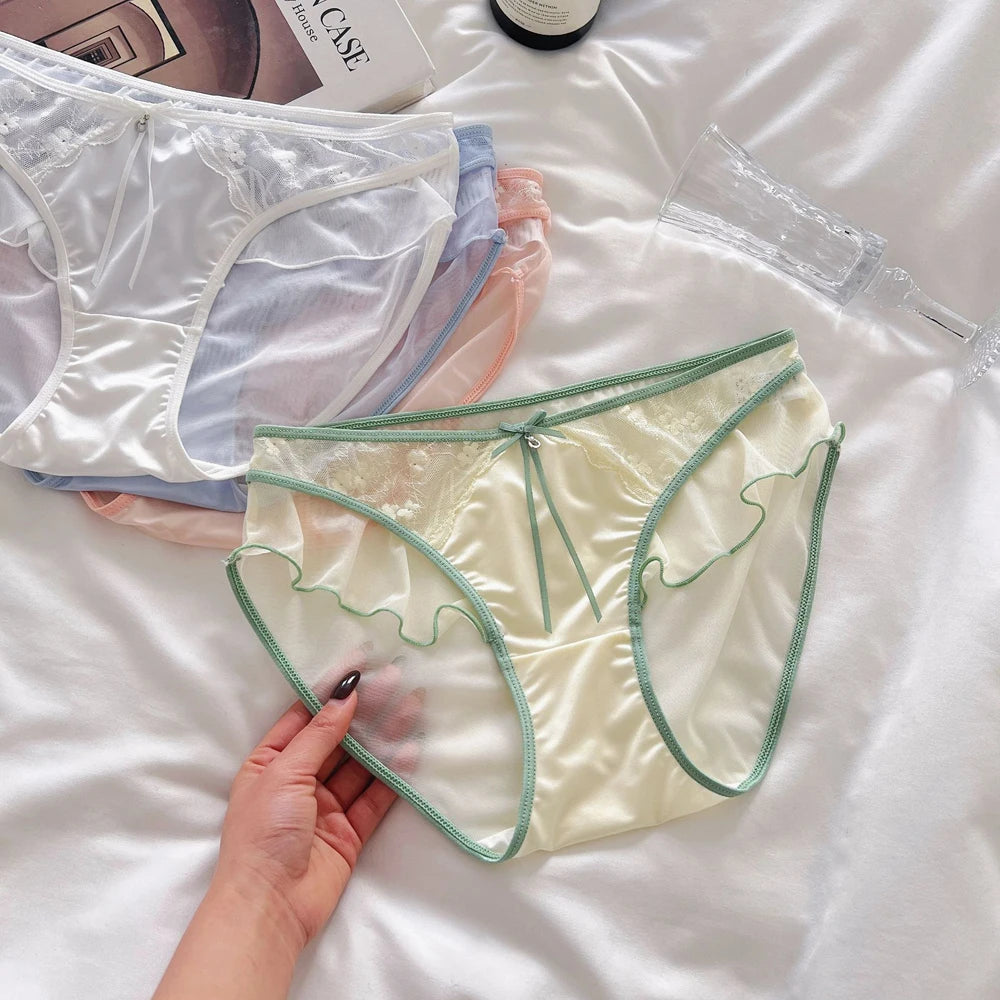 Moteriškos Skaidrios Nėrinių Kelnaitės- Raukšlėtais Kraštais ir Kaspinėliais