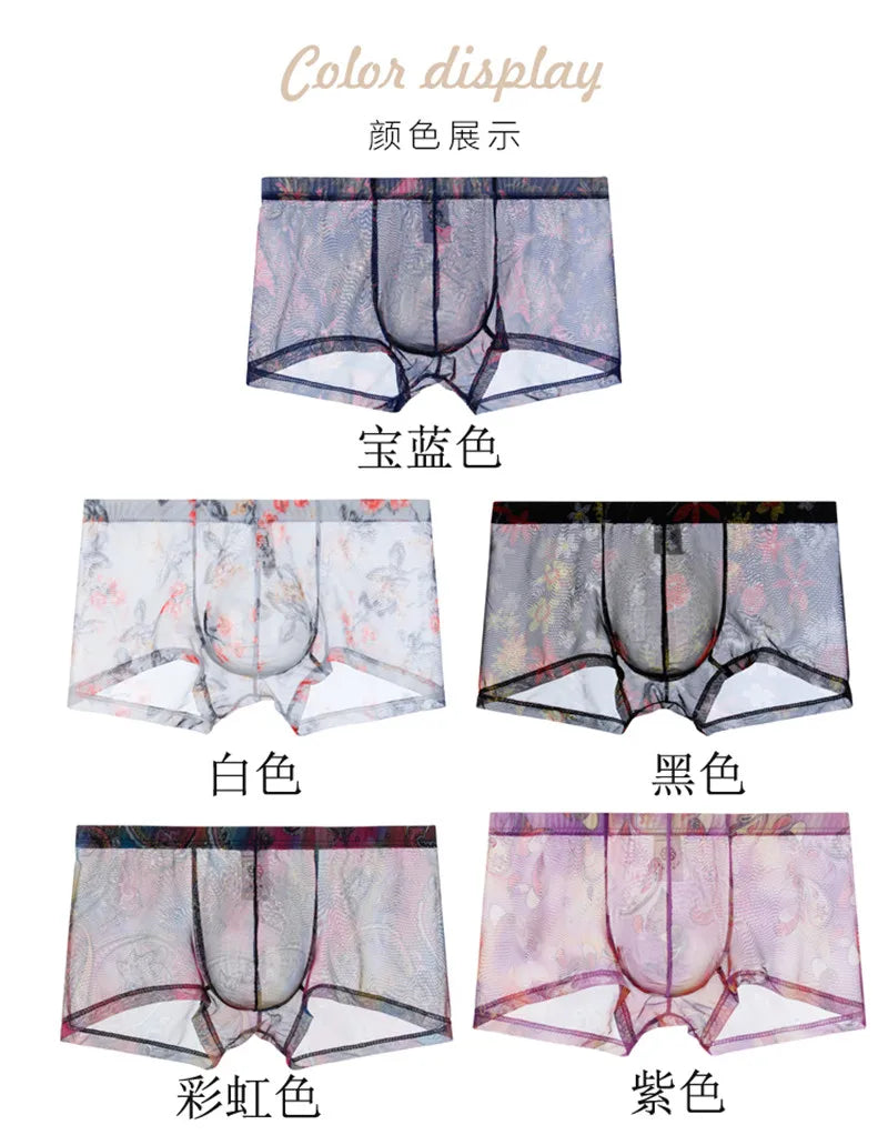 Vyriškos Seksualios Mesh Boxer Kelnaitės - Bohemian su U Formos Kišene