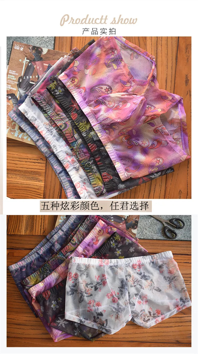 Seksualios ir stilingos vyriškos boxer kelnaitės su bohemian dizainu, pagamintos iš kvėpuojančio mesh audinio. Šios kelnaitės su U formos kišene ir perspektyviu dizainu sujungia komfortą, seksualumą ir funkcionalumą. Idealios vyrams, kurie vertina drąsų stilių ir maksimalų komfortą.