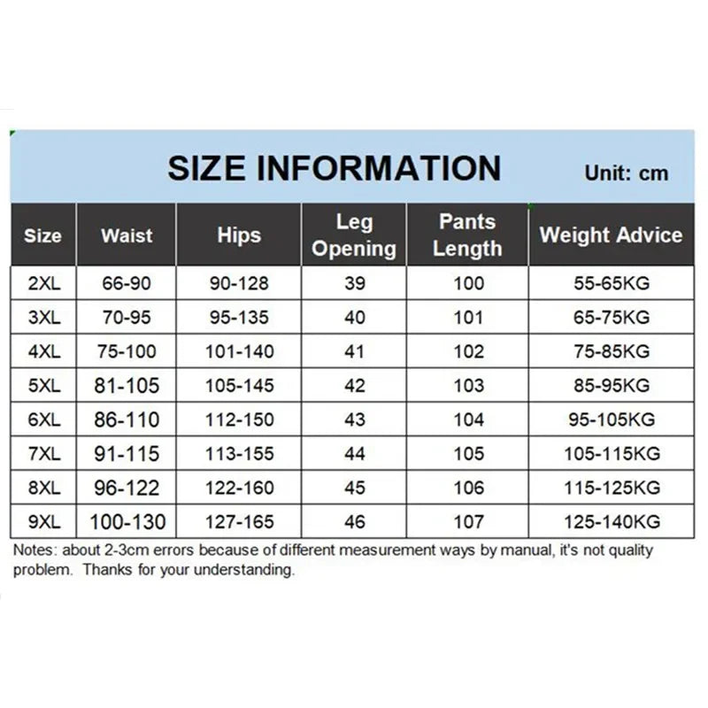 | 9XL | 115-120 | 135-140 | 82-84 | 114-117 | 185-190 cm |