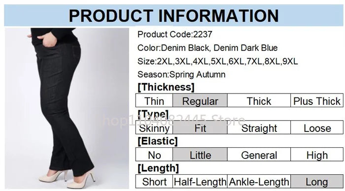 Šie specialiai sukurti moteriški džinsai yra idealus pasirinkimas aukštoms moterims, ieškantioms stilingų ir patogių kelnių didelių dydžių. Pagaminti iš elastingo džinsinio audinio, šie džinsai pasižymi slim fit kirpimu, aukštu liemeniu ir ilgomis kelnėmis. Idealiai tinka moterims, kurioms reikalingi didesni dydžiai ir ilgesnis kelnių ilgis.