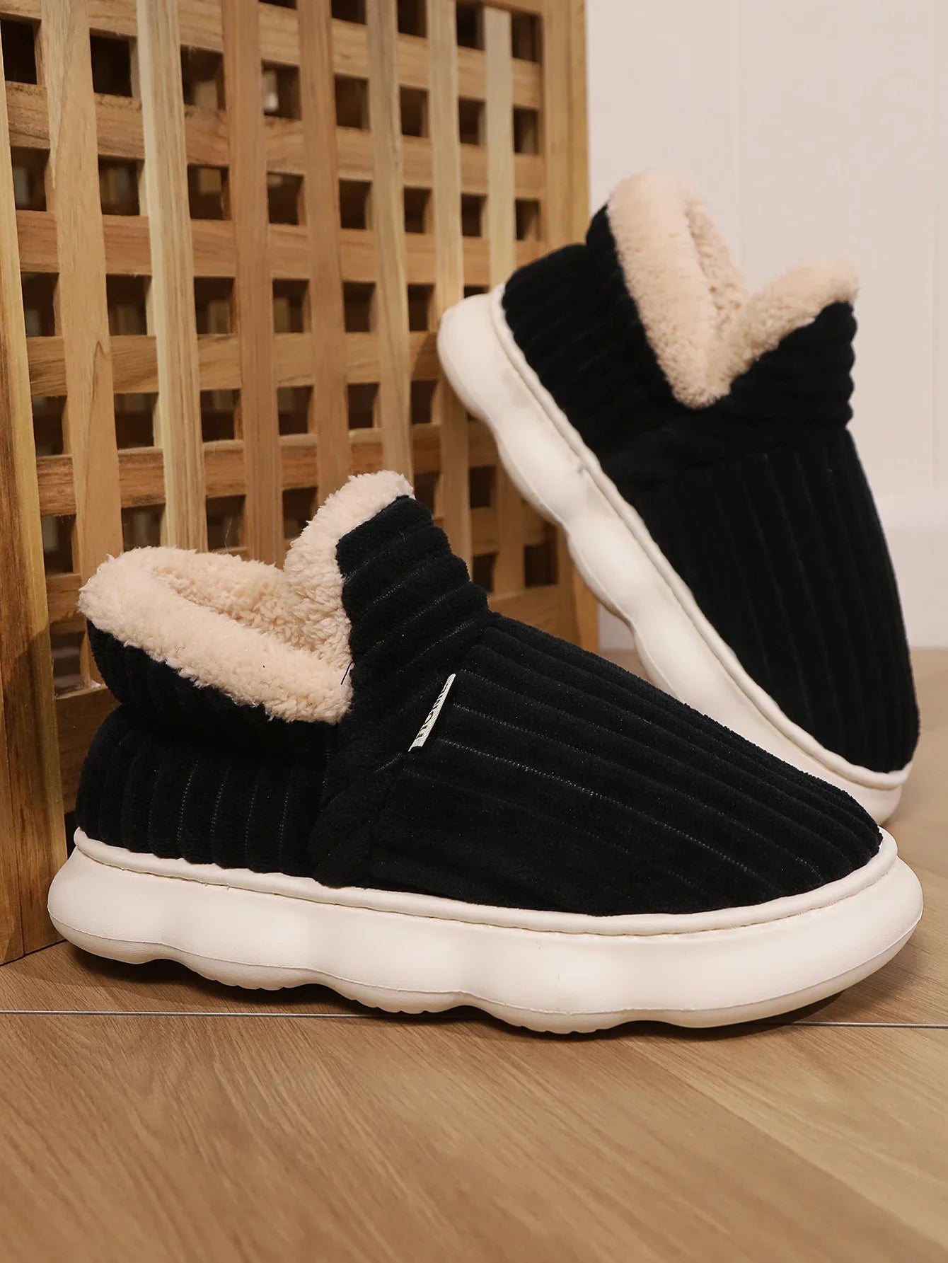 Mėgaukitės maksimaliu namų komfortu su šiomis minkštomis ir šiltomis žieminėmis šlepetėmis! Trumpas pliušas, kailiuko dizainas, neslystanti padų ir fuzzy soft tekstūra sukuria tobulą derinį šilumos ir komforto. Unisex dizainas tinka tiek vyrams, tiek moterims - idealūs visai šeimai!