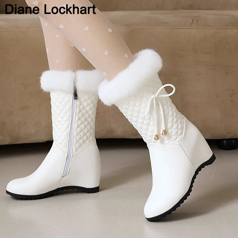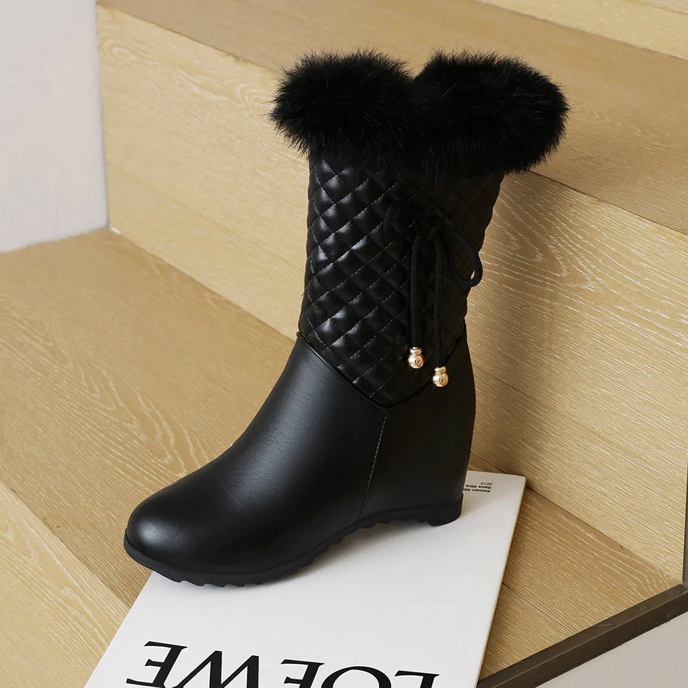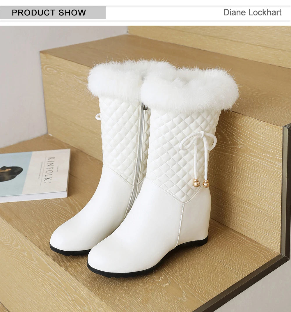 Balti Žieminiai Batai Moterims su Natūraliu Kailiuku - Šilti Pliušiniai