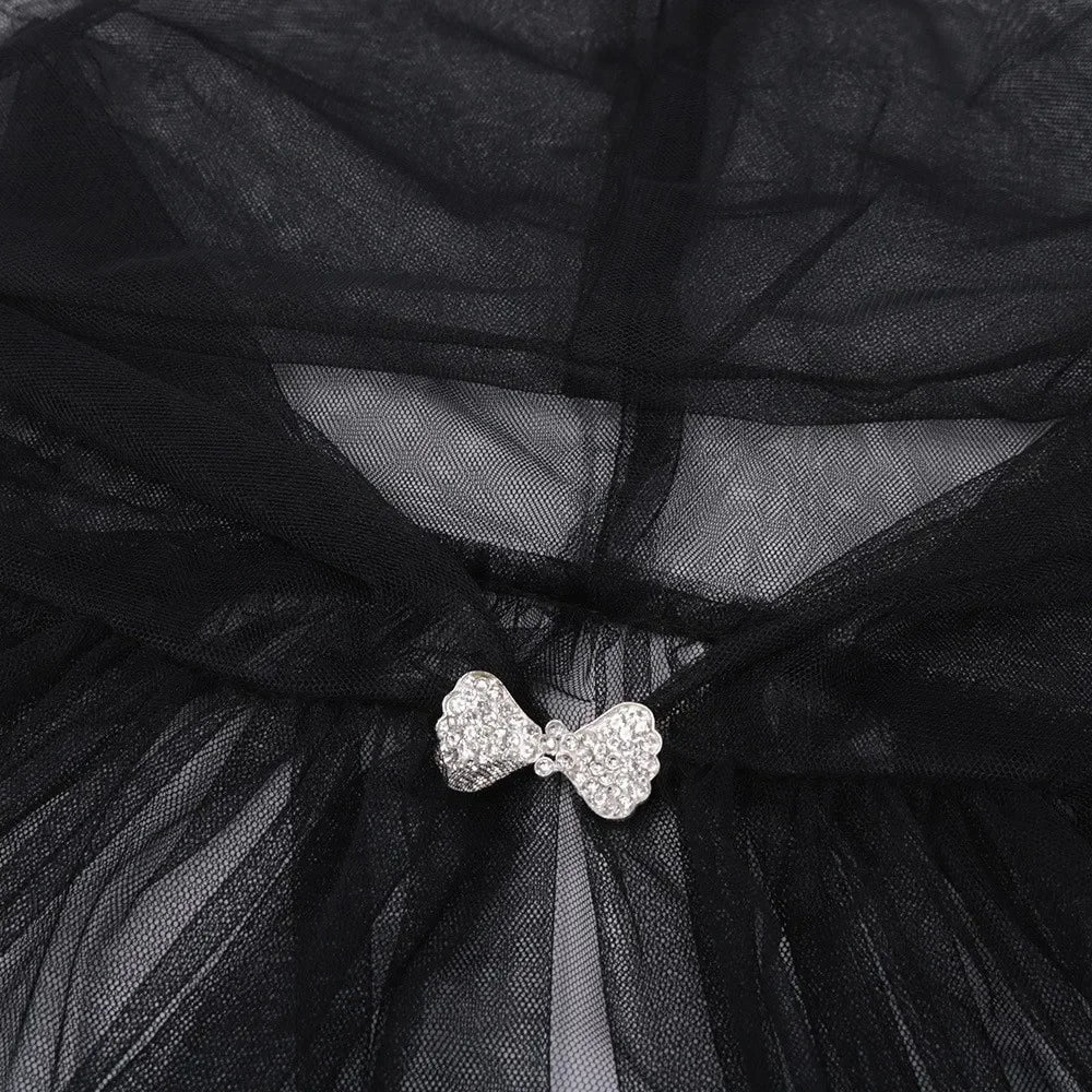 Sukurkite paslaptingą ir elegantišką įvaizdį su šiuo nuostabiu tinkleliniu apsiaustų! Tobulas pasirinkimas Helovino kostiumams, scenos pasirodymams ar teminėms vakarienėms.