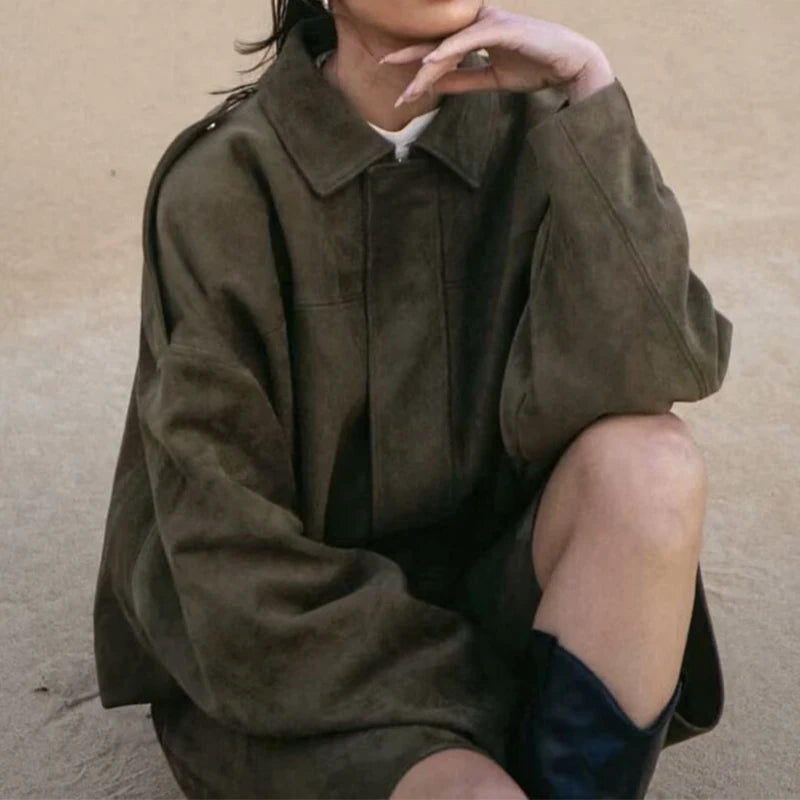 Moteriškas Paltas - Stilingas Rudens Žiemos Švarkas Moterims Laisvo Kirpimo